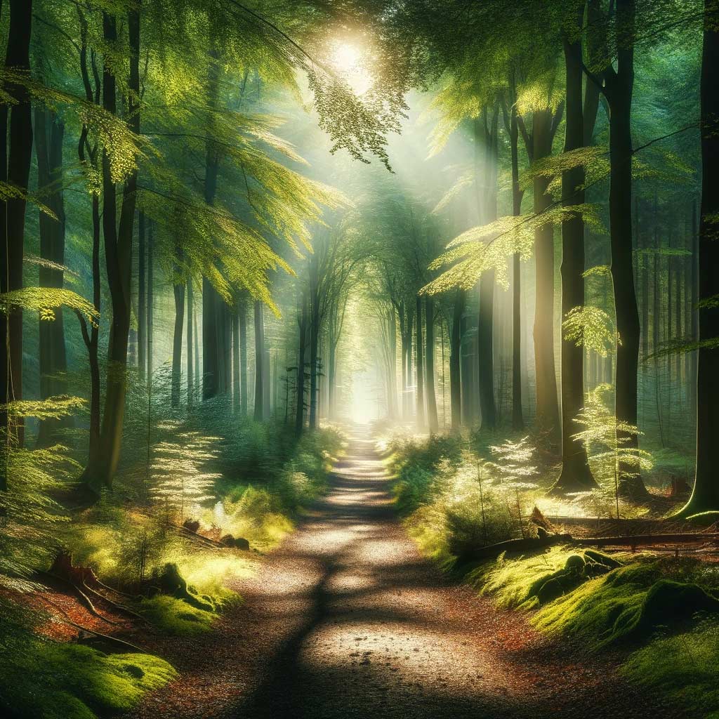 Abgelegener Waldweg, umgeben von Natur