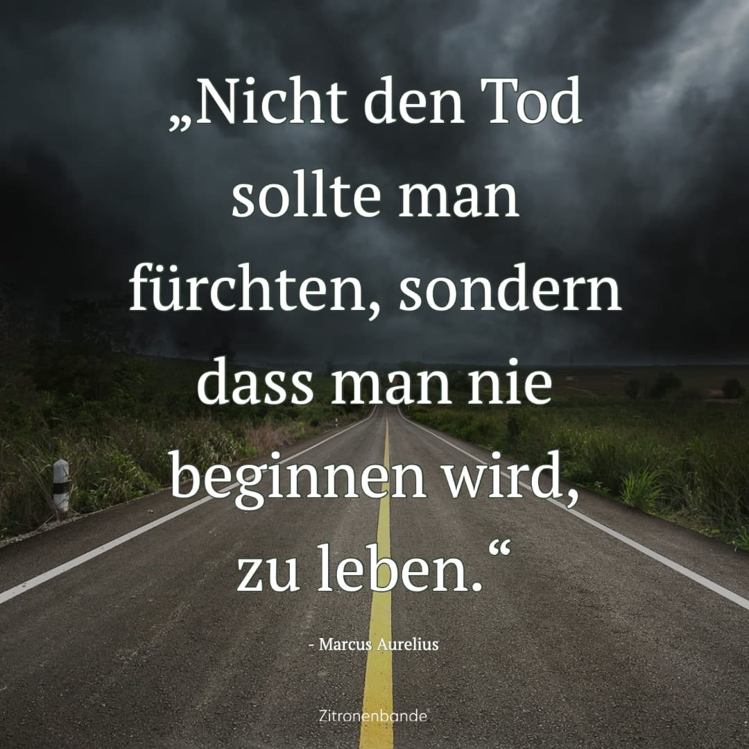 - „Nicht den Tod sollte man fürchten, sondern dass man nie beginnen wird, zu leben.“ – Marcus Aurelius