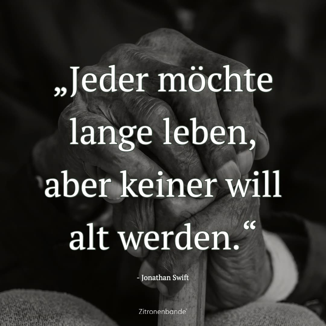 - „Jeder möchte lange leben, aber keiner will alt werden.“ – Jonathan Swift