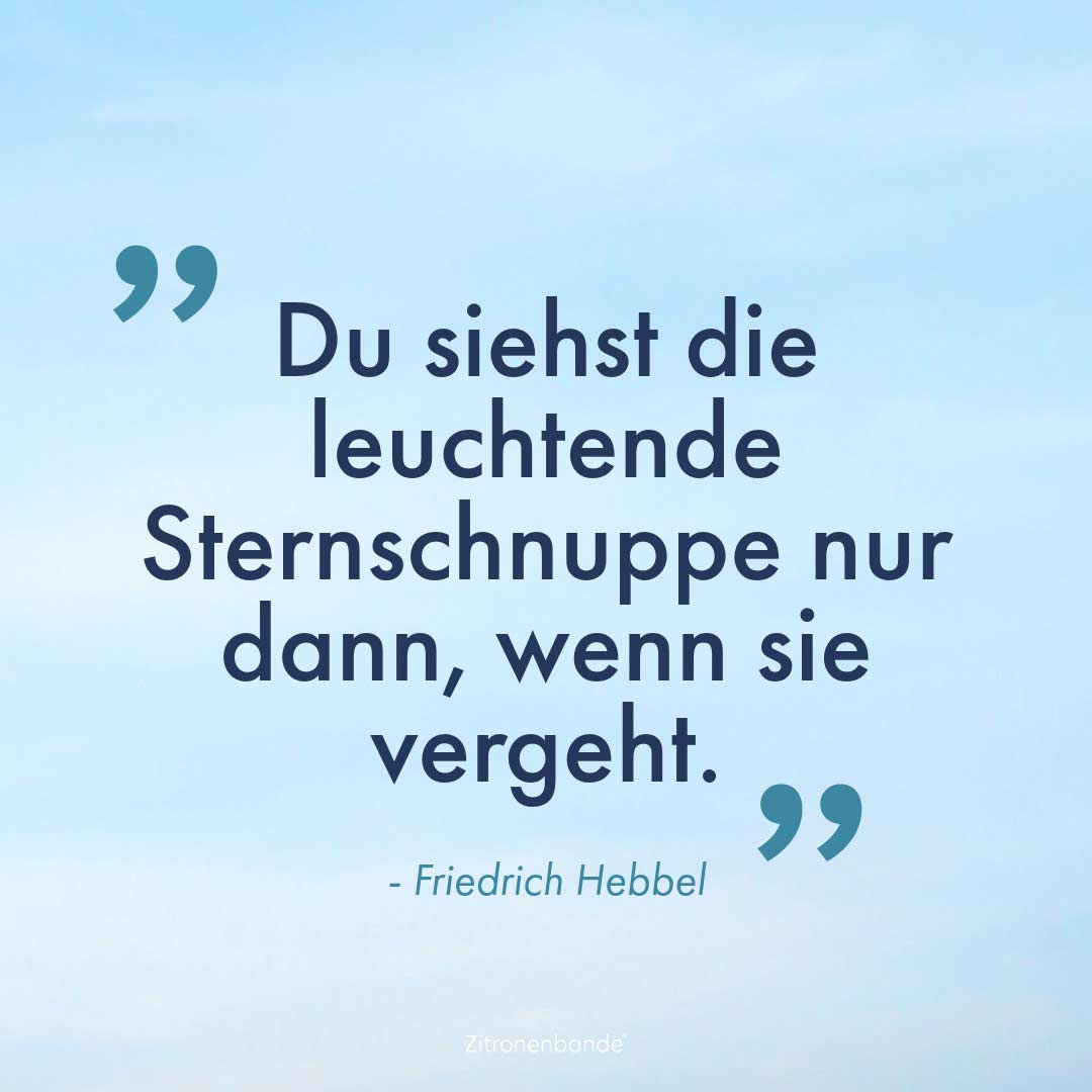 - „Du siehst die leuchtende Sternschnuppe nur dann, wenn sie vergeht.“ – Friedrich Hebbel