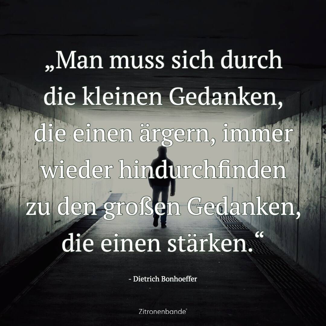 - „Man muss sich durch die kleinen Gedanken, die einen ärgern, immer wieder hindurchfinden zu den großen Gedanken, die einen stärken.“ – Dietrich Bonhoeffer