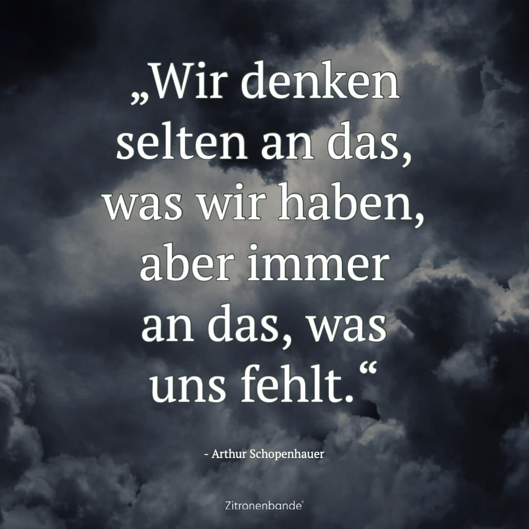 - „Wir denken selten an das, was wir haben, aber immer an das, was uns fehlt.“ – Arthur Schopenhauer
